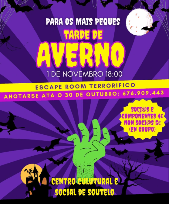 ¡El próximo 1 de noviembre, Soutelo se llenará de misterio y emociones con la esperada IV Noche del Averno! . Este evento, organizado por el Centro Cultural de Soutelo y Comparsa Soutelo, promete una experiencia inolvidable para todos los que se atrevan a participar.
