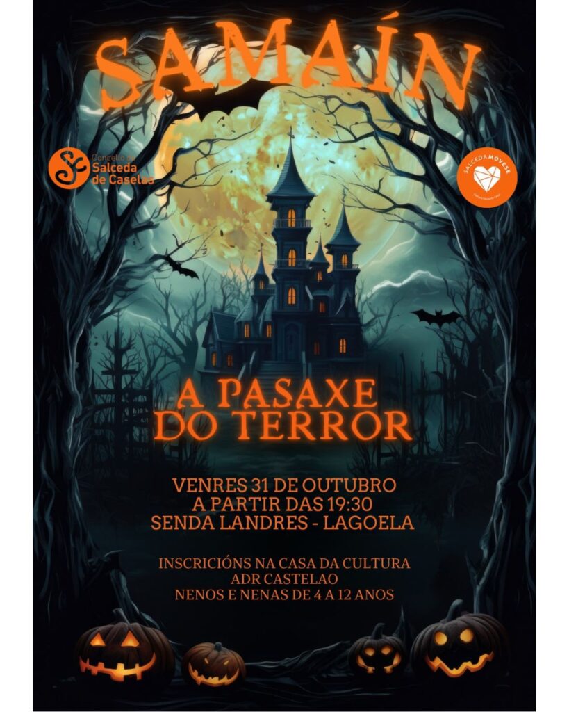 El 31 de octubre a partir de las 19:00 horas llega a Salceda de Caselas el Pasaxe do Terror para niños y niñas de 4 a 12 años, será necesaria la inscripción en la Casa da Cultura Castelao.