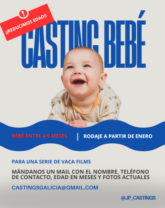 La empresa Alén Filmes está buscando bebés para participar como figurantes en el rodaje de una serie en Galicia, tendrá lugar a partir del mes de enero de 2026. Si quieres presentar a tu bebé, envía un mail a castingsgalicia@gmail.com con el nombre, teléfono de contacto, edad en meses y fotos muy actuales (de estos días) (recibirás la política de privacidad y confirmación de que hemos recibido el mail!)