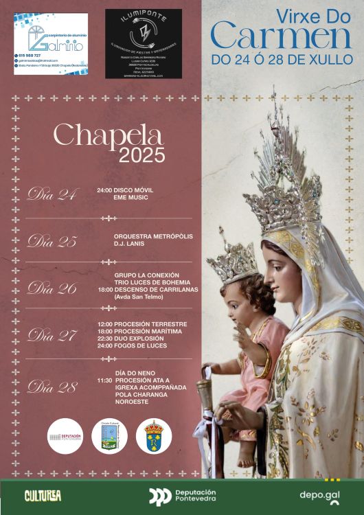 La parroquia de Chapela celebra las fiestas en honor a la Virgen del Carmen. El evento, organizado por el Círculo Cultural y Deportivo de la parroquia combinará tradición, música y actividades populares para todos los públicos.