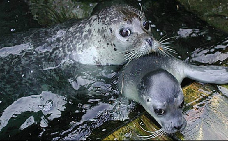 - Las focas de la piscina exterior comen dos veces al día: a mediodía y a media tarde.