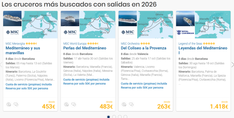 Barcelona o Valencia, los que no somos de esas ciudades tenemos que sumar avión y posiblemente gastos de hotel, aunque algunas compañías ofrecen ese servicio incluido. Para los gallegos existen cruceros que navegan por el