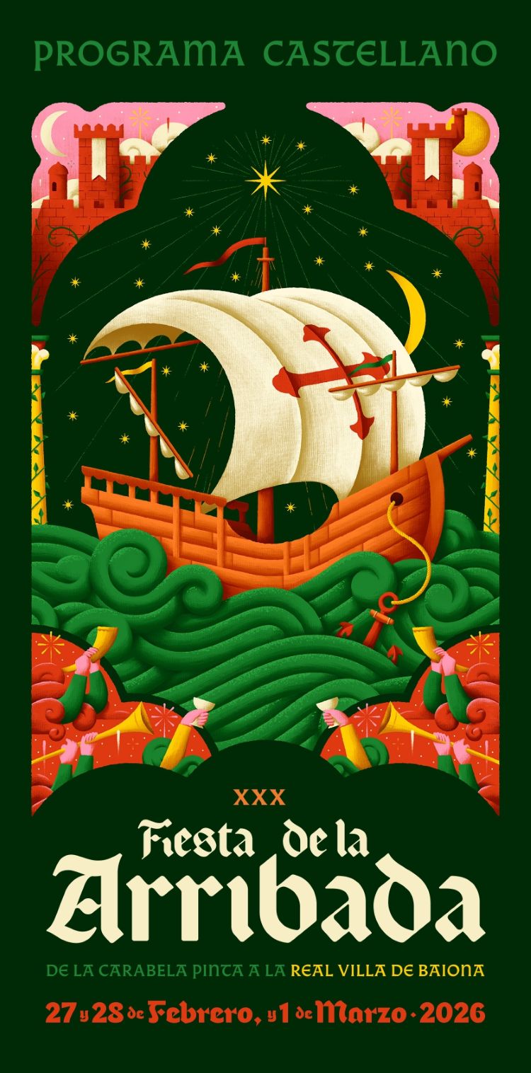 10:00h – Los cañones de la Fortaleza anuncian e comienzo del Real Mercado: Asentamiento de mercaderes y artesanos llegados de todos los rincones do Reino.11:20h – Parque de la Palma: Espectáculo medieval de marionetas de hilo «El Carro Errante» de Toni Dimondi.12:00/13:30h – Entrada a la Fortaleza de Monterreal: Gran Desfile Medieval con la participación de todos los grupos musicales que actuarán en el Real mercado medieval de la Arribada 2026.12:20h – Playa de A Ribeira: Combate de Esgrima Medieval: Representación teatral de duelos con espadas a cargo de la Sala Viguesa de Esgrima Antiga.13:10h – Convento de las madres Dominicas: Concierto de música antigua a cargo del trío «Cuerdas Atlánticas».13:15h – Playa de A Ribeira: Demostración de Tiro con Arco a cargo del Club Meigarco.15:30h – Alameda Carabela Pinta: Pasacalles de «Gigantes Rojos» a cargo de Saltinpunqui.16:00h – Alameda Carabela Pinta: Pasacalles «Tropas de Asedio con su catapulta» a cargo de la compañía El Niño Lápiz.16:15h – Plaza del Buen Almuerzo (Santa Liberata): Pasacalles músicas medievales a cargo del grupo Gaeloc.16:30h – Playa de A Ribeira: Gran Torneo Medieval: Justa, Tiro de venablos y Derribo de estafermo a cargo de Hípica Celta.16:45h – Jardines de la Casa de la Navegación (entrada por la calle Conde): Espectáculo medieval de aéreos «Memoria de las Anjanas» a cargo de Las Sargantanas.17:00h – Plaza de Santa Liberata: Espectáculo medieval de marionetas de hilo «El Carro Errante» de Toni Dimondi.17:30h – Alameda Carabela Pinta: Pasacalles de «Gigantes Rojos» a cargo de Saltinpunqui.18:00h – Alameda Carabela Pinta: Pasacalles «El Gran Elefante» con sus seres fantásticos (ogros y demonios), recorrerán el mercado a cargo de la compañía El Niño Lápiz.18:10h – Zona Ribeira-Gastro: Pasacalles de música medieval a cargo del grupo Gaeloc.18:30h – Playa de A Ribeira: Representación teatral «Arribada del Descubrimiento». Dramaturgia: Avelino Sierra, Dirección: Mónica Sueiro.19:00h – Jardines de la Casa de la Navegación (entrada por la calle Conde): Espectáculo aéreo y de fuego «Tierra de Fires» a cargo de Las Sargantanas.19:45h – Alameda Carabela Pinta: Pasacalles «Los Mounstros» a cargo de Saltinpunqui.20:30h – Plaza del Buen Almuerzo (Santa Liberata): Pasacalles «Los Gigantes y la Bola» de la compañía El Niño Lápiz, asombrarán a los viandantes con sus zancos y bufones, acompañados de la música medieval del grupo Gaeloc.21:15h – Alameda Carabela Pinta: Batucada «Lenha Verde» y «Los Faunos» de Las Sargantanas, recorrerán el recinto de la fiesta como clausura a la Fiesta de la Arribada.22:00h – Fin del Real Mercado y de la Fiesta de la Arribada.