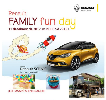Esta sábado, 11 de febrero, será el turno de Vigo concretamente en el concesionario de Renault, Rodosa, situado en la Avenida de Madrid, 135 , celebrarán con todas las familias que se quieran unir su Renault Family Fun Day.