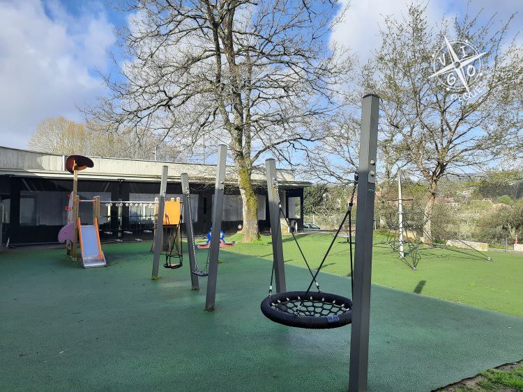 El parque “O son do regueiro” cuenta además con tirolina y zona biosaludable con distintos elementos para hacer gimnasia, como veis es ideal para disfrutar en familia.