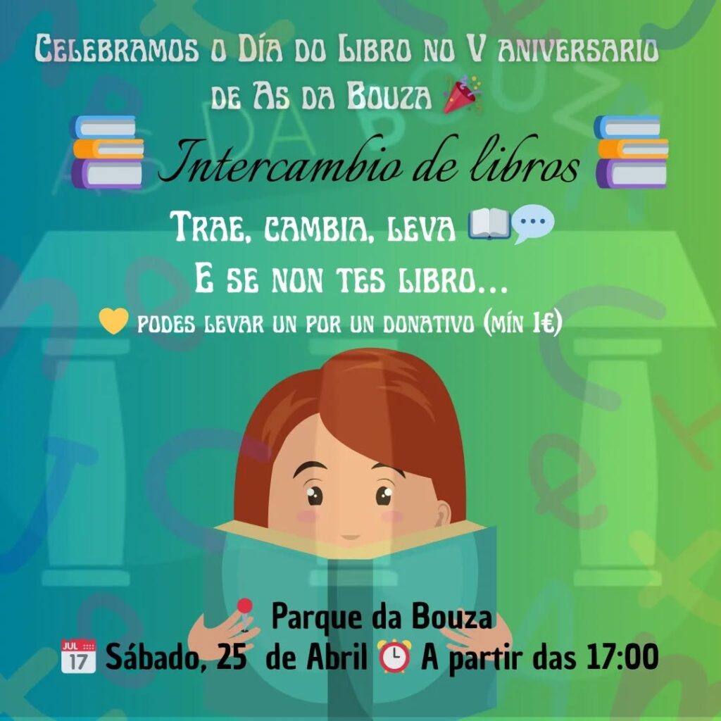 El intercambio de libros se enmarca también en la celebración del Día del Libro y está abierto a todas las edades. Los asistentes podrán llevar uno o varios libros ya leídos para intercambiarlos por otros. En caso de no disponer de ejemplares, también será posible llevarse un libro a cambio de una pequeña donación simbólica.