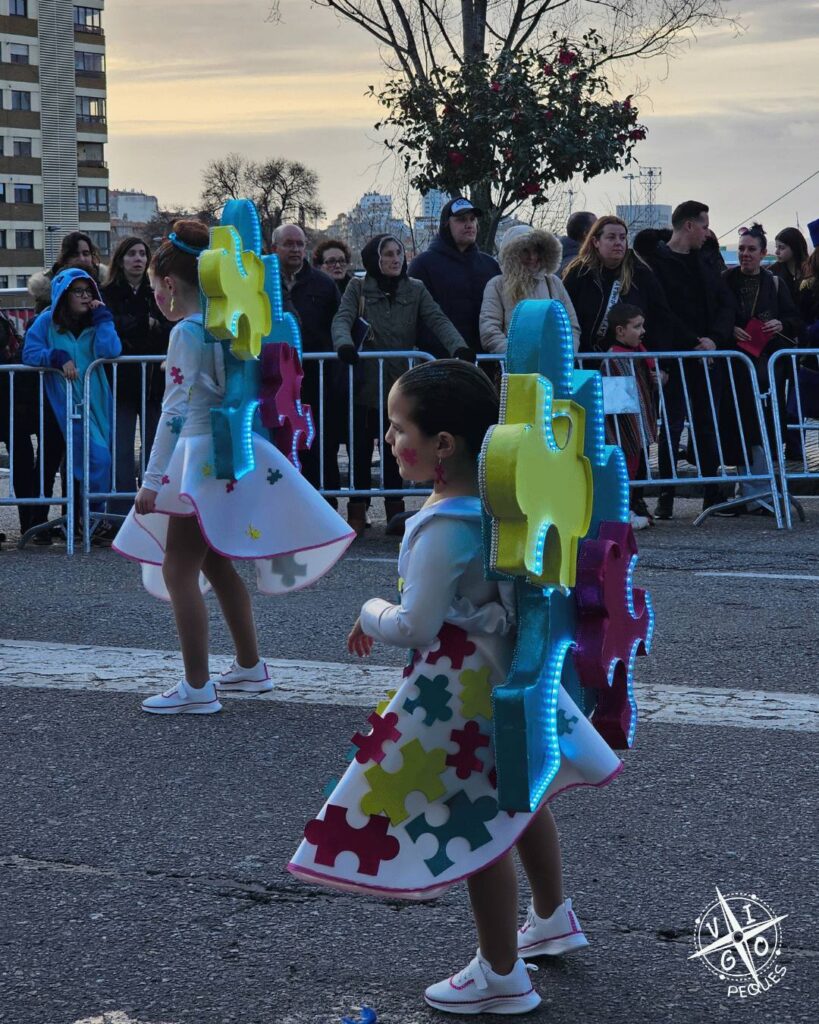 El desfile de comparsas del Entroido de Vigo volvió a llenar el centro de la ciudad de color, música y espectáculo. Miles de personas se repartieron a lo largo del recorrido entre Isaac Peral y Colón para disfrutar de una de las grandes citas del carnaval vigués.